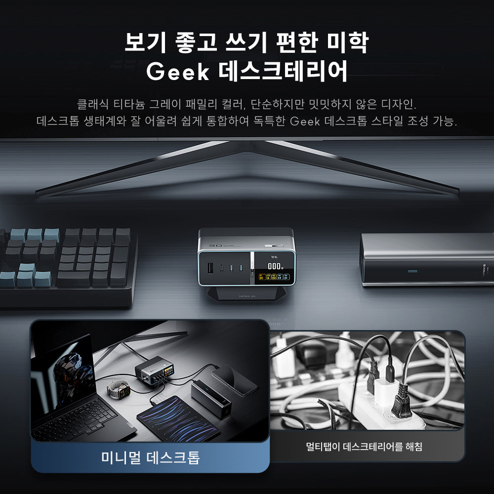 보기 좋고 쓰기 편한 Geek 데스크테리어데스크톱에 녹아든 테크 미학5개의 디바이스가 동시에 충전가능