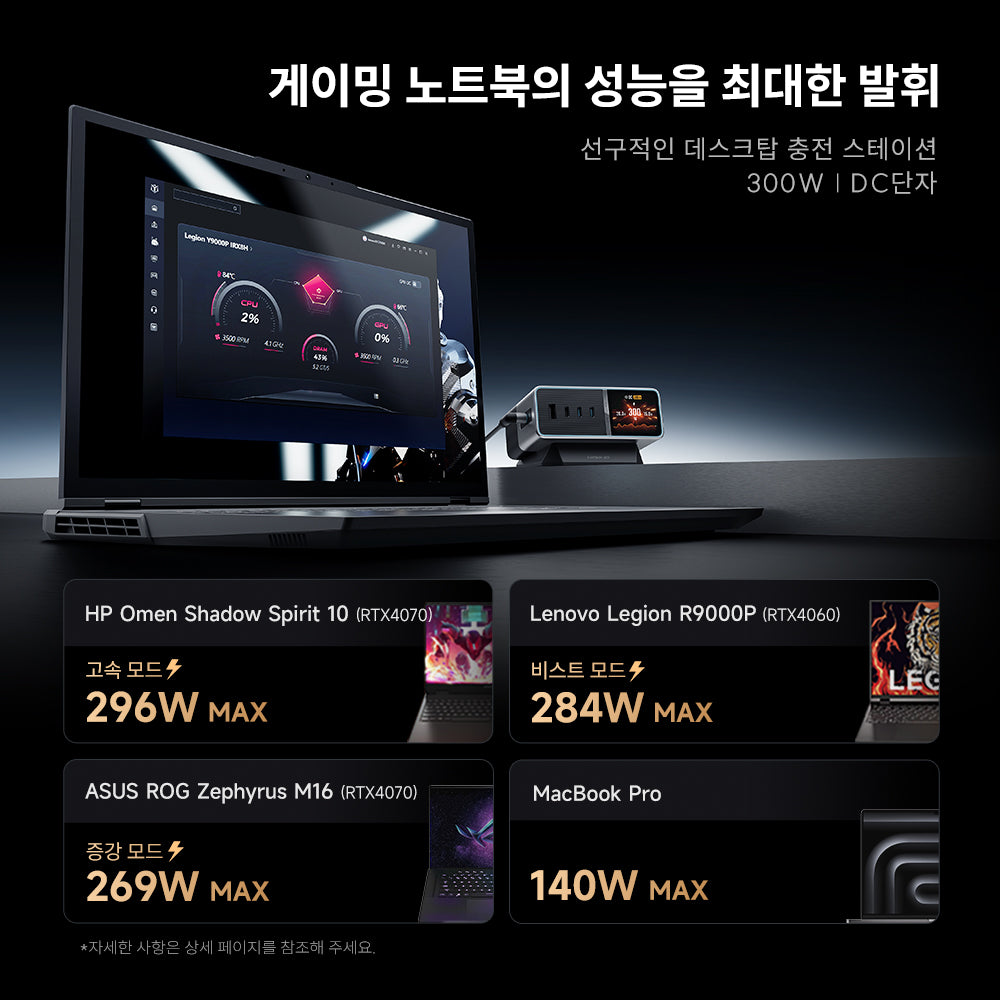 게이밍 노트북의 성능을 최대한 발휘선구적인 300W MAXDC 충전 스테이션