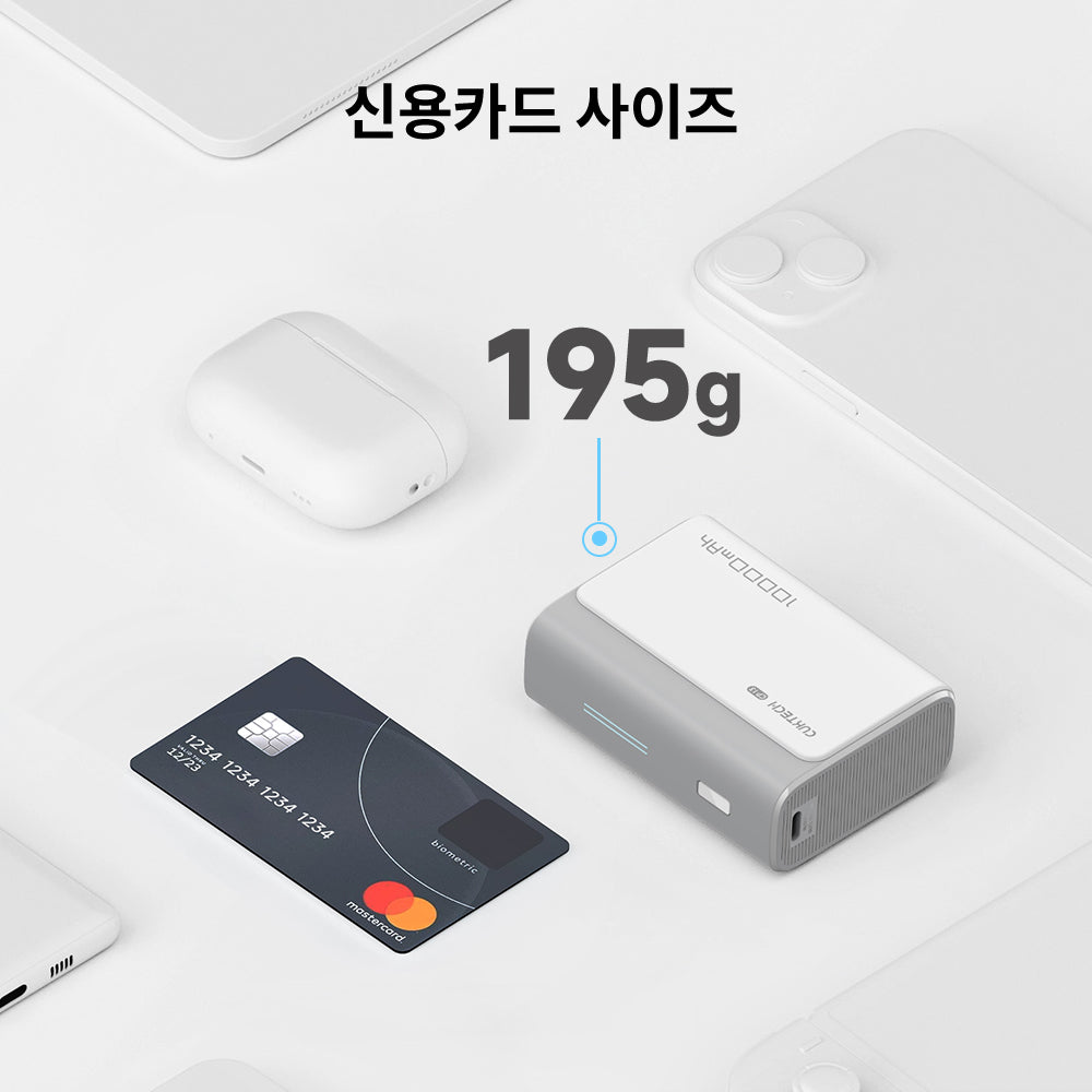 신용카드와 비슷한 제품 정면 사이즈에 무게 약 195g로 귀엽고 휴대하기 쉽다.
