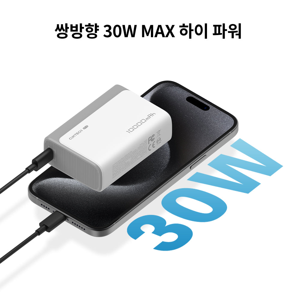 10,000mAh 용량으로 여러 번 충전할 수 있고, iPhone 15의 비디오 재생 시간을 34시간으로 늘린다. CUKTECH 보조배터리는 KC, UL, CE, CB, FCC 등 안전 인증을 받아서 더욱 안전하게 사용할 수 있다.