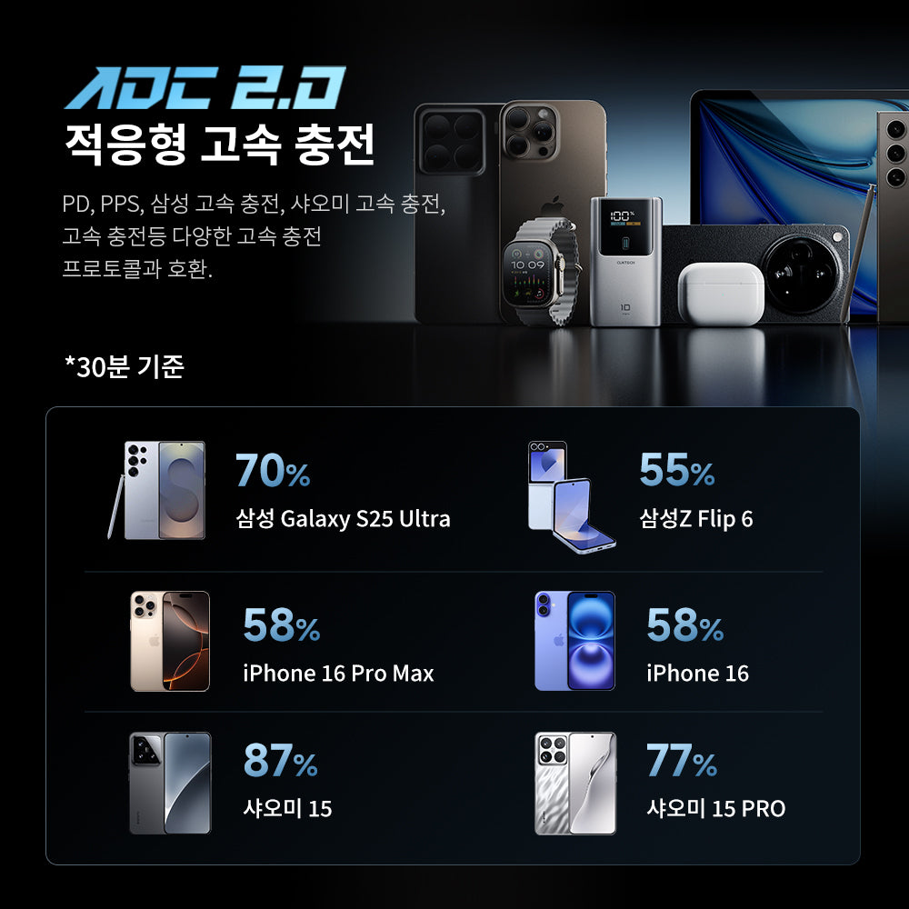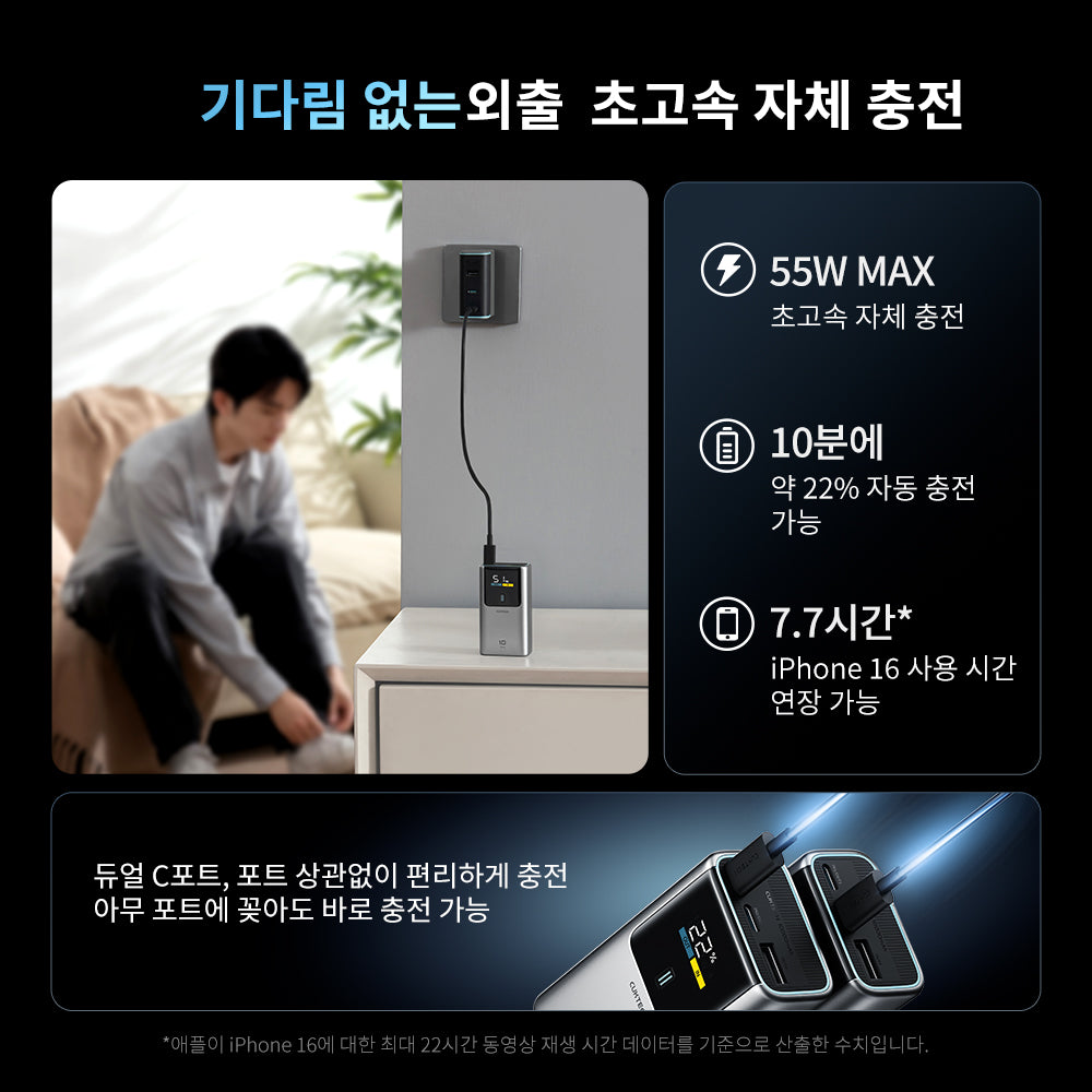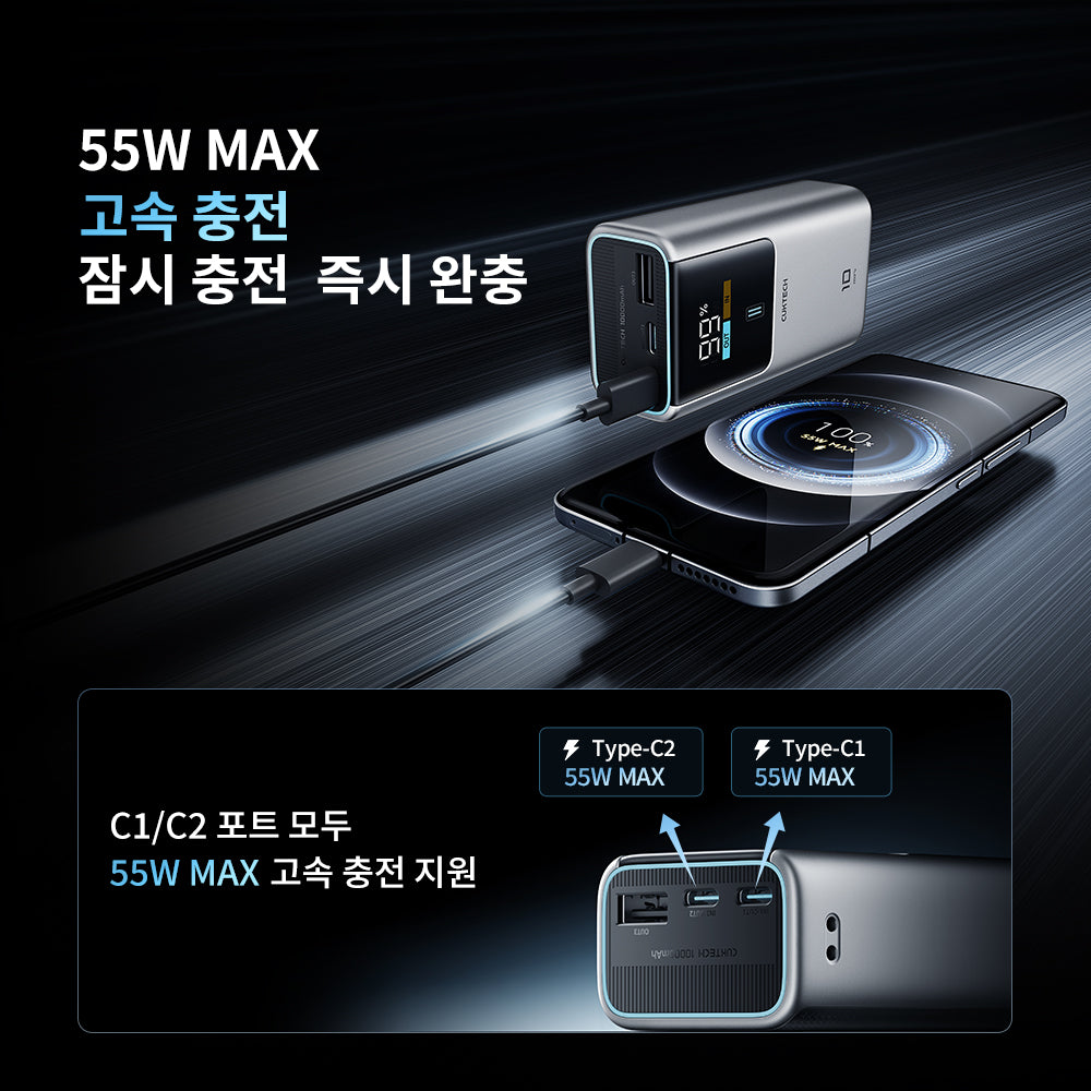 55W MAX 양방향 충전C1/C2 싱글 포트 모두 지원55W MAX 입력/출력