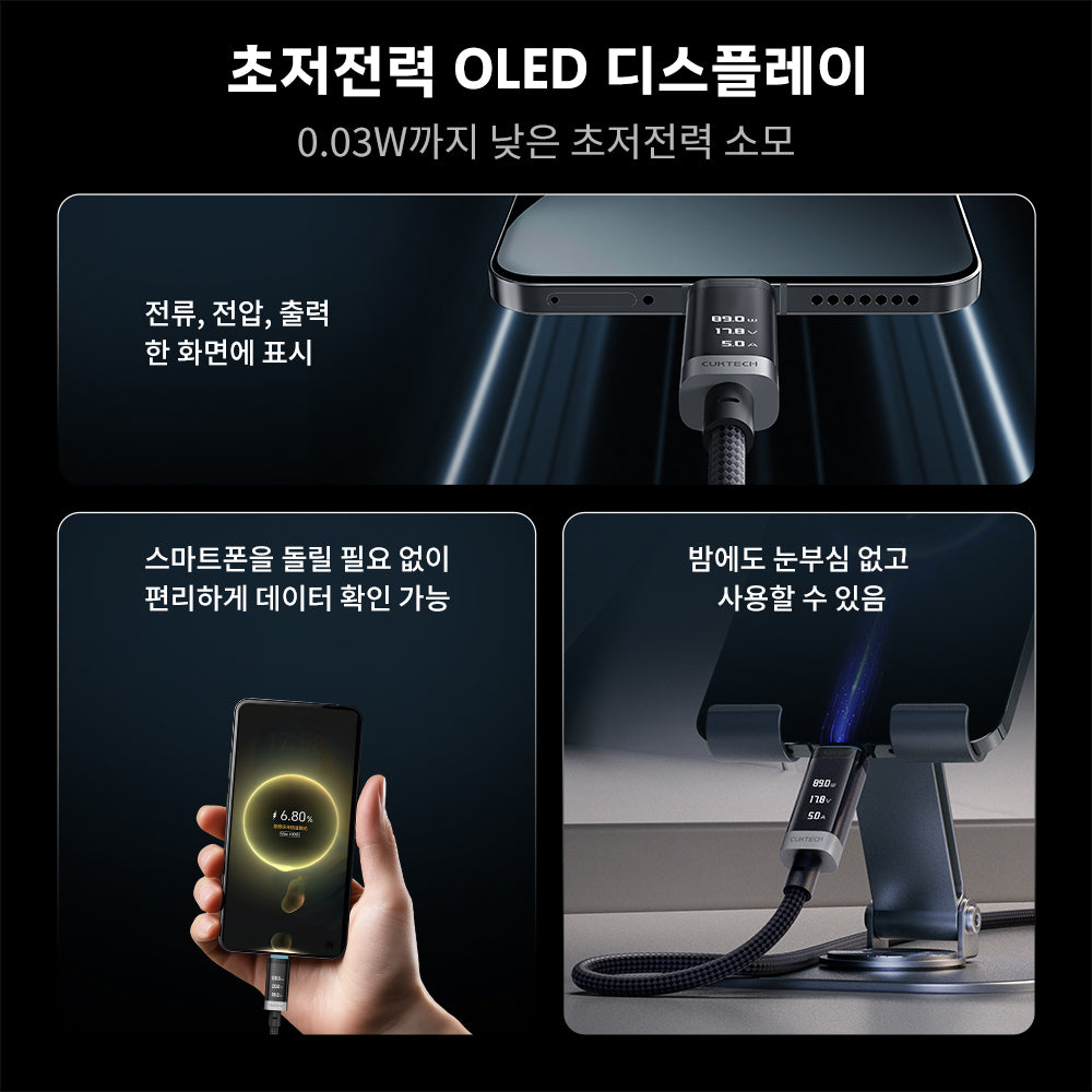 디스플레이0.03W까지 낮은 전력 소모스마트폰 충전 방향과 일치하는 유저 인터페이스(User Interface, UI)전류, 전압, 출력 한 화면에 표시