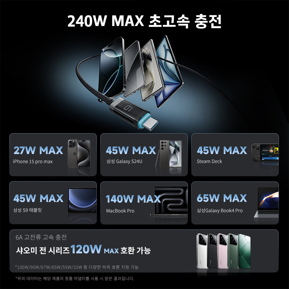 240W MAX 급속 충전 최대 48V/5A 고출력 지원