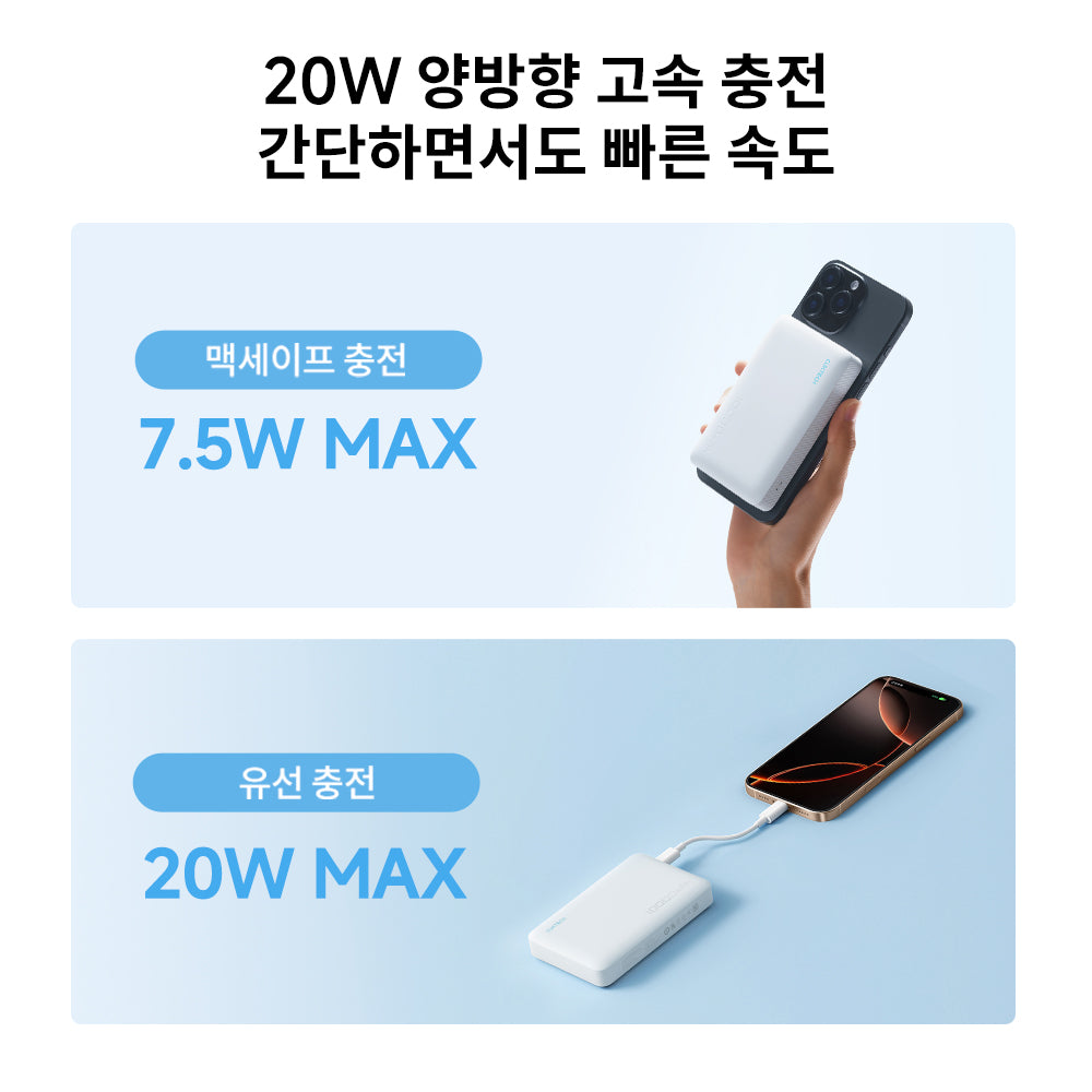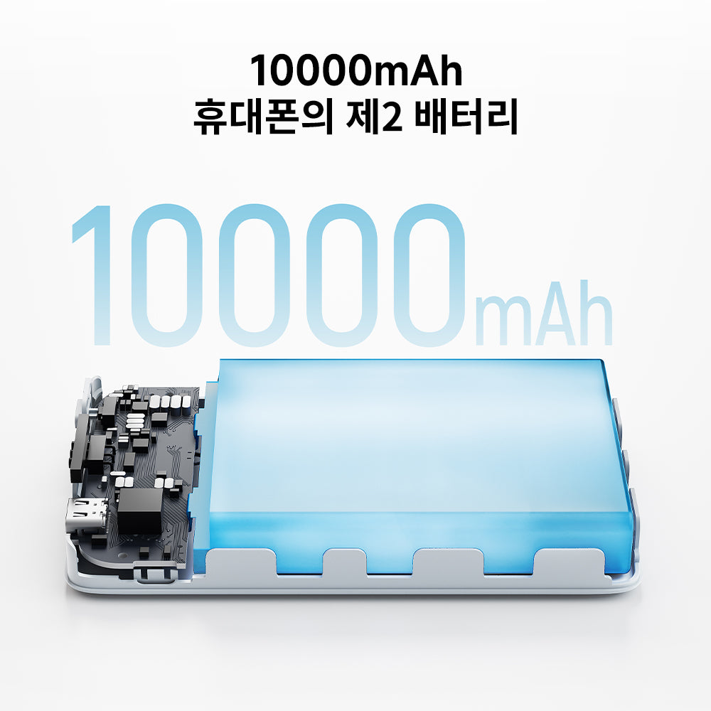 【10000mAh 대용량 배터리】 iPhone 16 최대 1.8회 충전, 2대 기기 동시 충전 가능. 저전류 모드로 이어폰 등도 안전하게 충전.