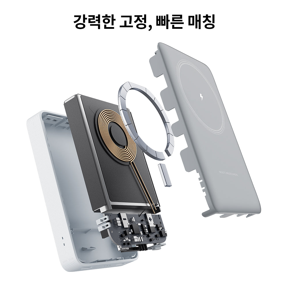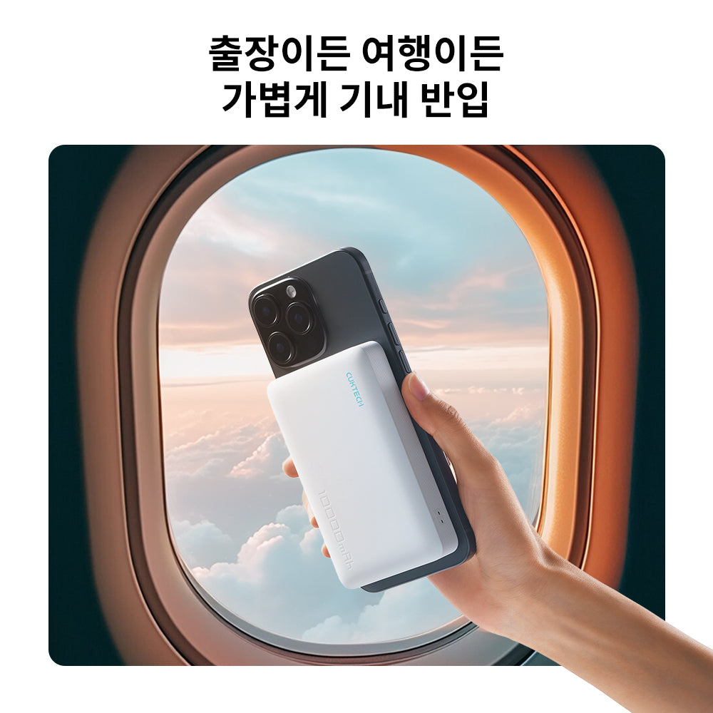 【안전성】 무선 충전·배터리 잔량 표시로 이상 즉시 감지. 이중 NTC 보호로 과열 방지, 유선 충전 시 무선 충전 자동 종료. 기내 반입 가능.